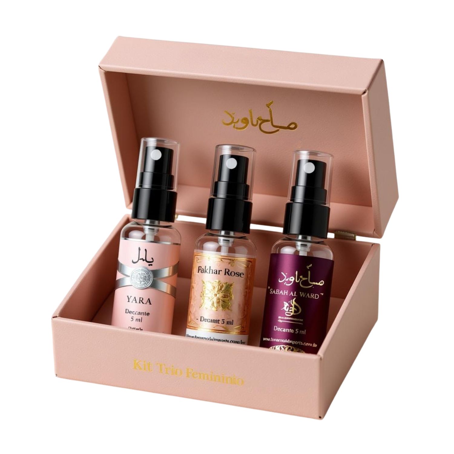 Os perfumes Yara (Lattafa) é doce, frutado e cremoso (frutas vermelhas e baunilha); Fakhar Rose (Lattafa) é um floral branco intenso com rosas e baunilha, um clássico; e Sabah Al Ward (Al Wataniah) é um oriental floral fresco com notas de cacau, jasmim e um toque de uva/frutado, sendo um perfume mais sedutor e noturno.